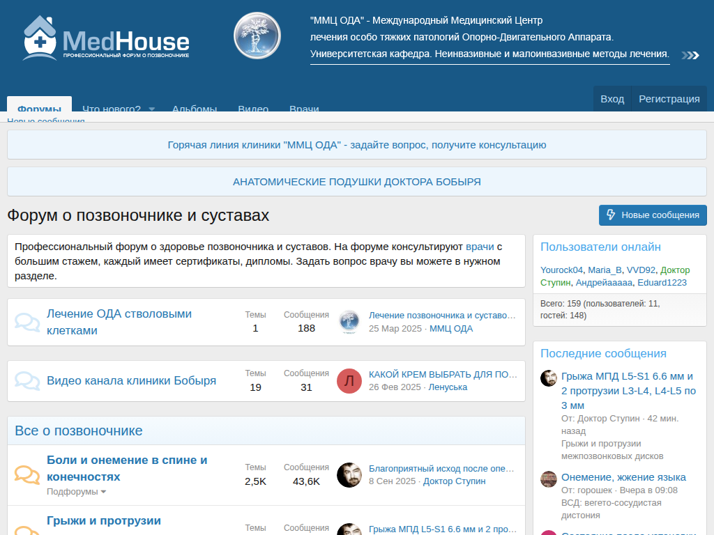 Форум о заболеваниях позвоночника. Разделы для пациентов и для специалистов. Статьи. Каталог клиник. /DMOZ/